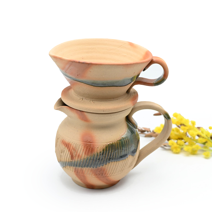 備前焼 オリーブ備前コーヒードリップセット